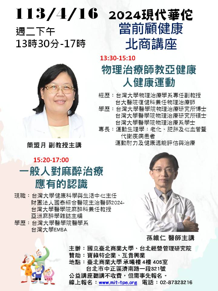 - 場次:物理治療師教亞健康人健康運動/一般人對麻醉治療應有的認識