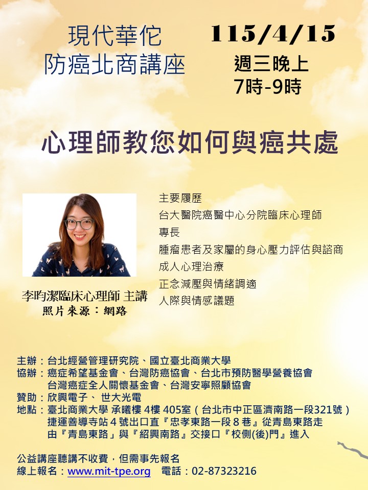 癌症希望基金會、台灣防癌協會、台北市預防醫學營養協會、台灣癌症全人關懷基金會、台灣安寧照顧協會