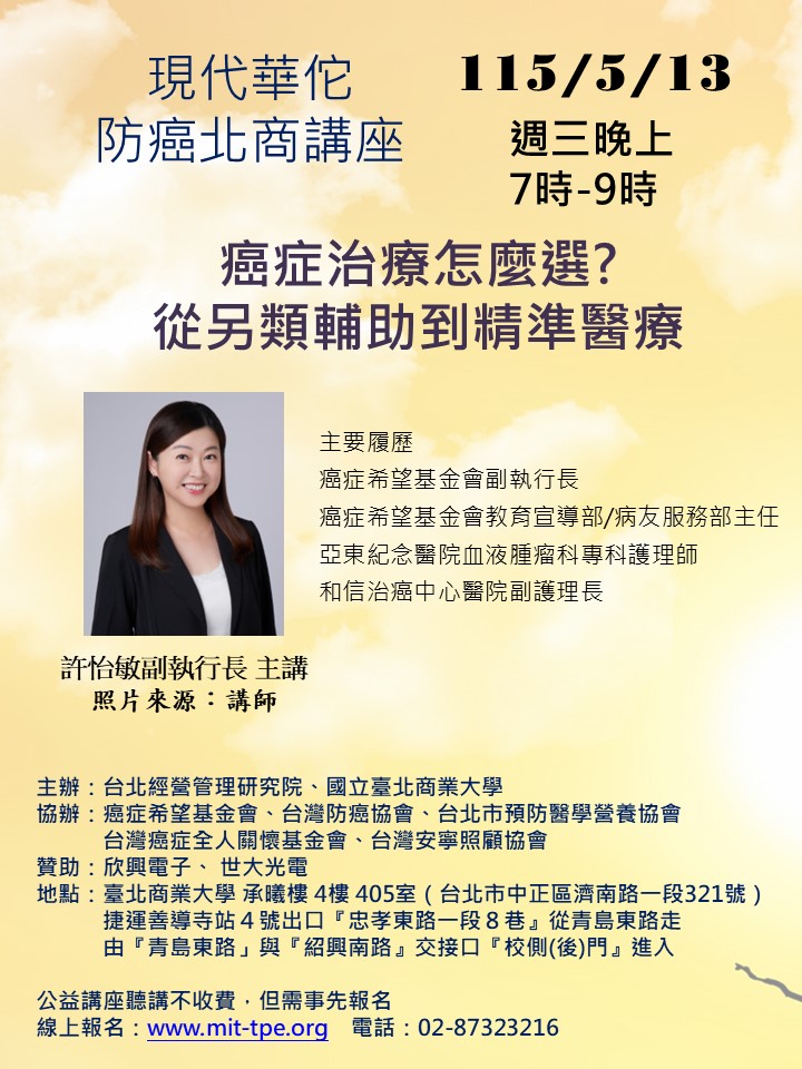 癌症希望基金會、台灣防癌協會、台北市預防醫學營養協會、台灣癌症全人關懷基金會、台灣安寧照顧協會