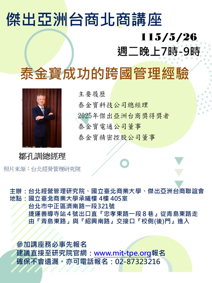 台北經營管理研究院、國立臺北商業大學、傑出亞洲台商聯誼會